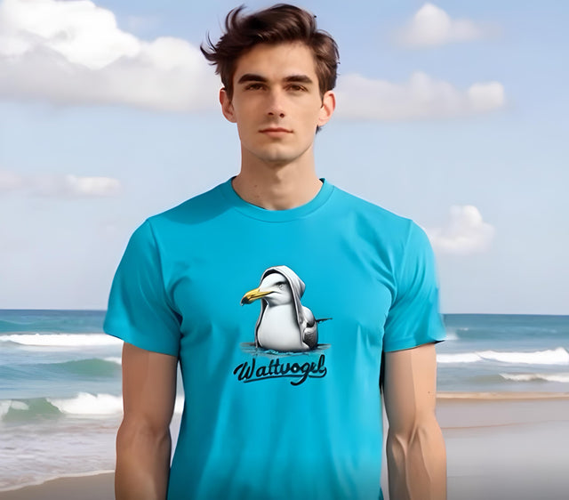 Bei uns finden Sie ein großes Sortiment an bedruckten T-Shirts, Kappen, Tassen und Accessoires mit beliebten Möwen-Motiven unserer Marke Wattvogel®.