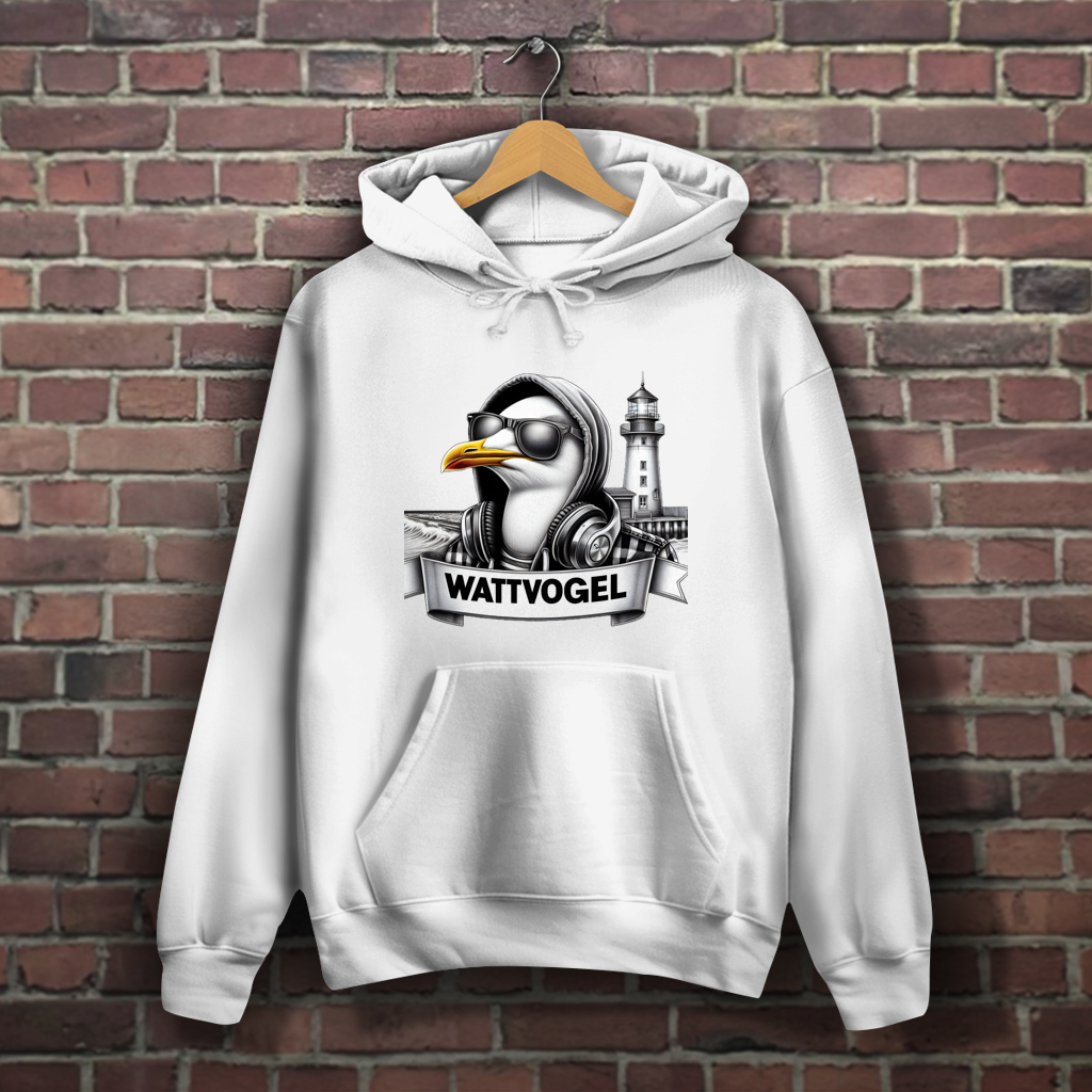 Damen Hoodie Coole Möwe mit Kapuze und Kopfhörer mit Leuchtturm
