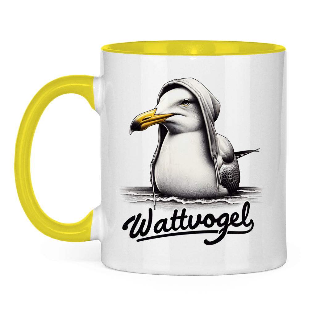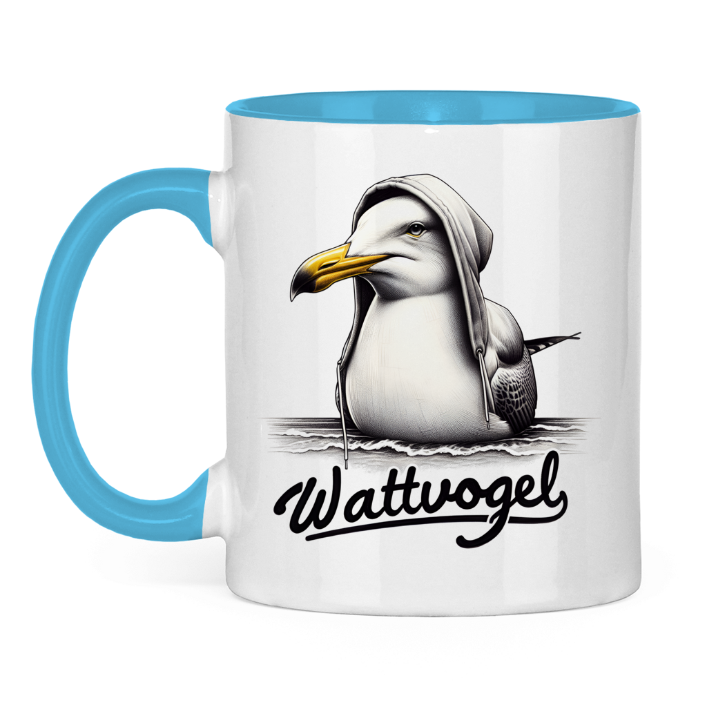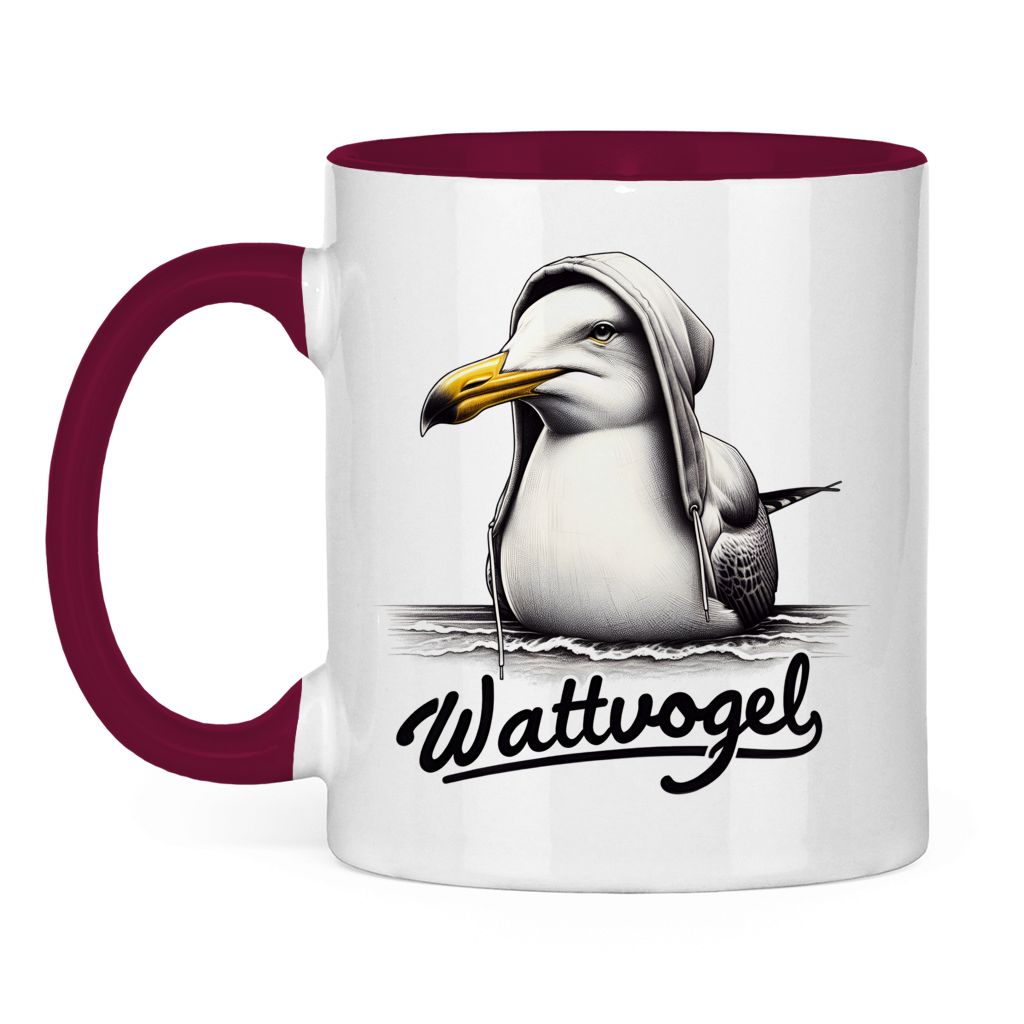 Tasse zweifarbig Colle Möwe mit Kaputze Wattvogel